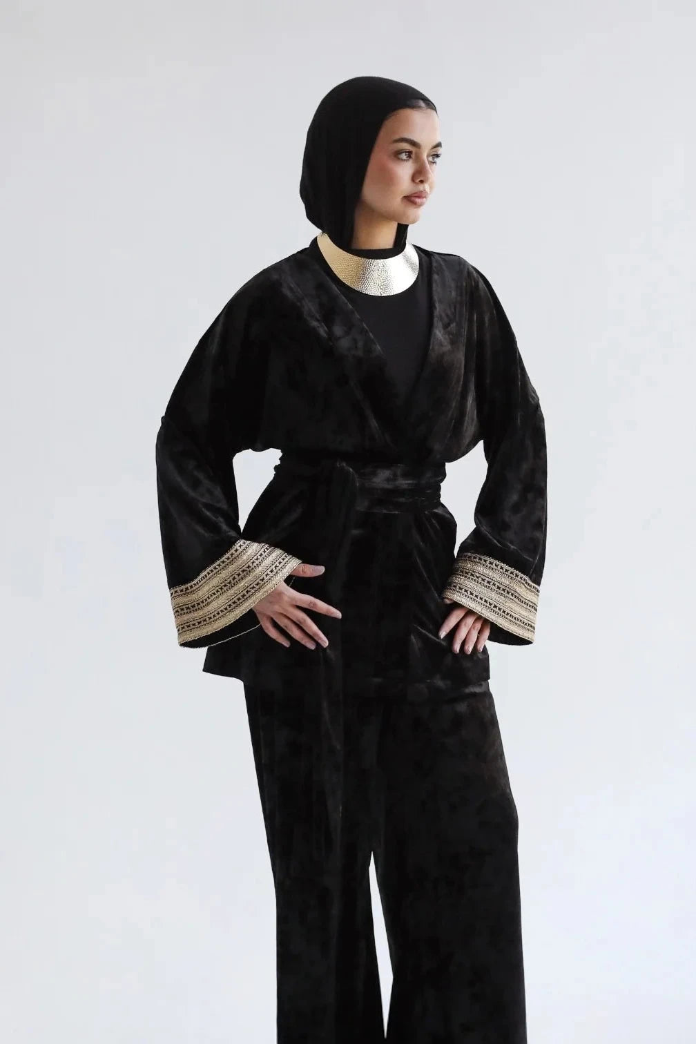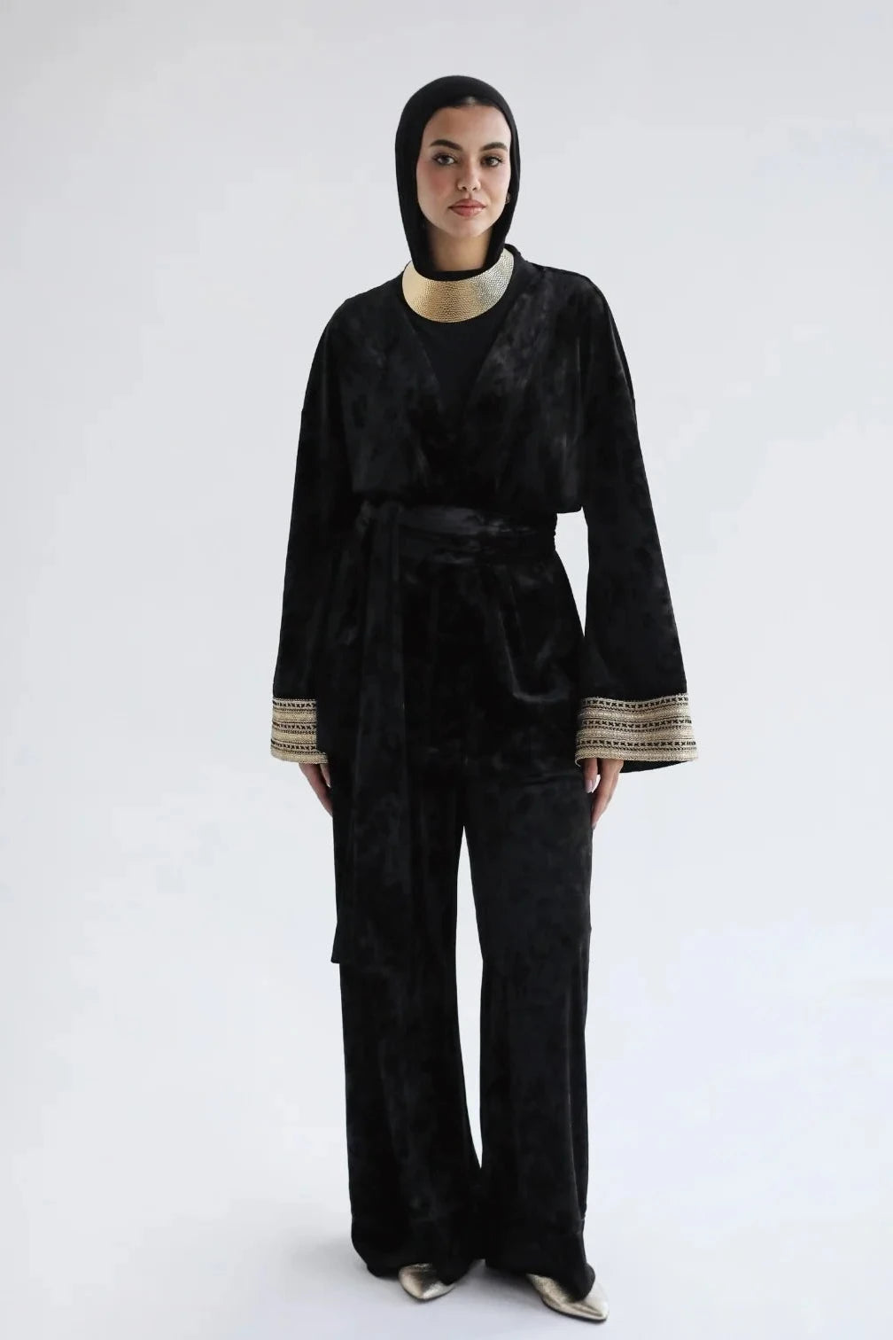 Ensemble cache-cœur en velours noir brodé