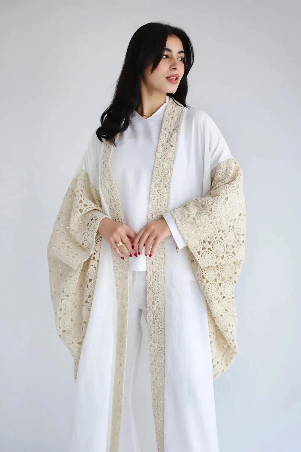 Kaftan en lin brodé et drapé