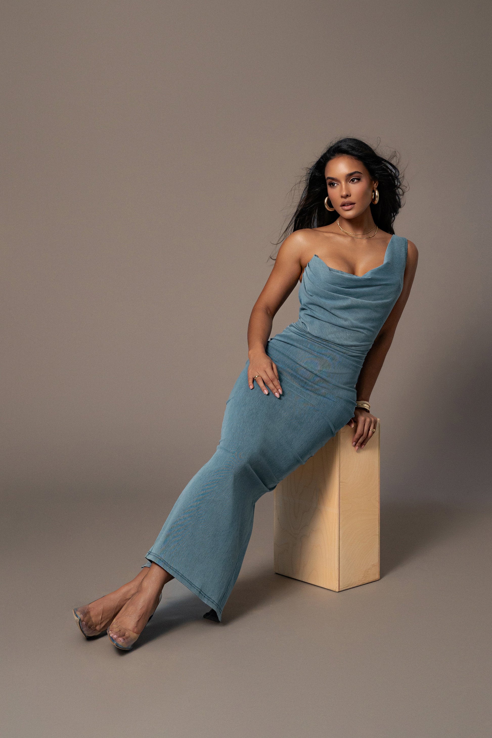Robe Longue 'Yasmina' Asymétrique en Jean Délavé