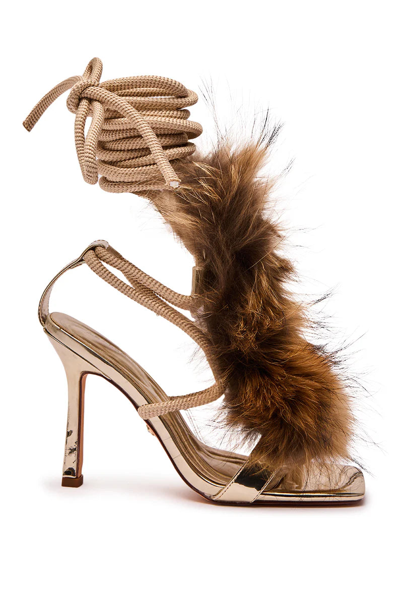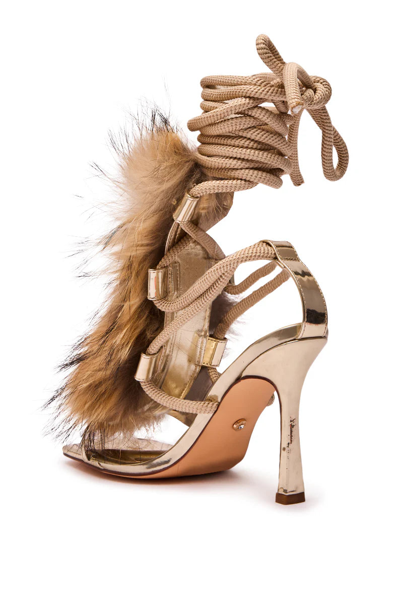 Sandales 'Dune' à Talon Aiguille, Brides Corde et Fausse Fourrure